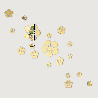 Golden Acrylic Lilly Flower & Butterfly Acrylic Mirror
