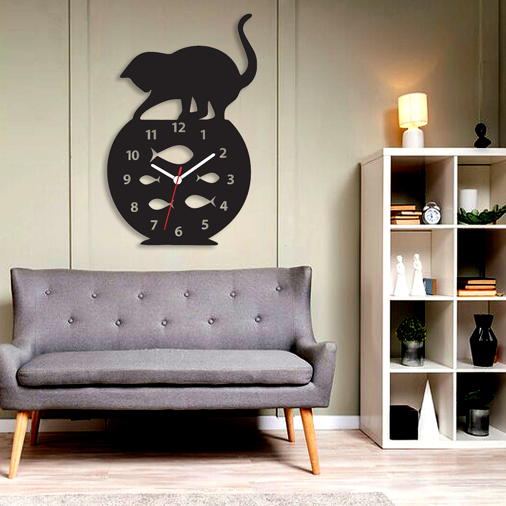 Cat and Fish Bowl Wall Clock - - Stylish Wall Clock for Home Decor