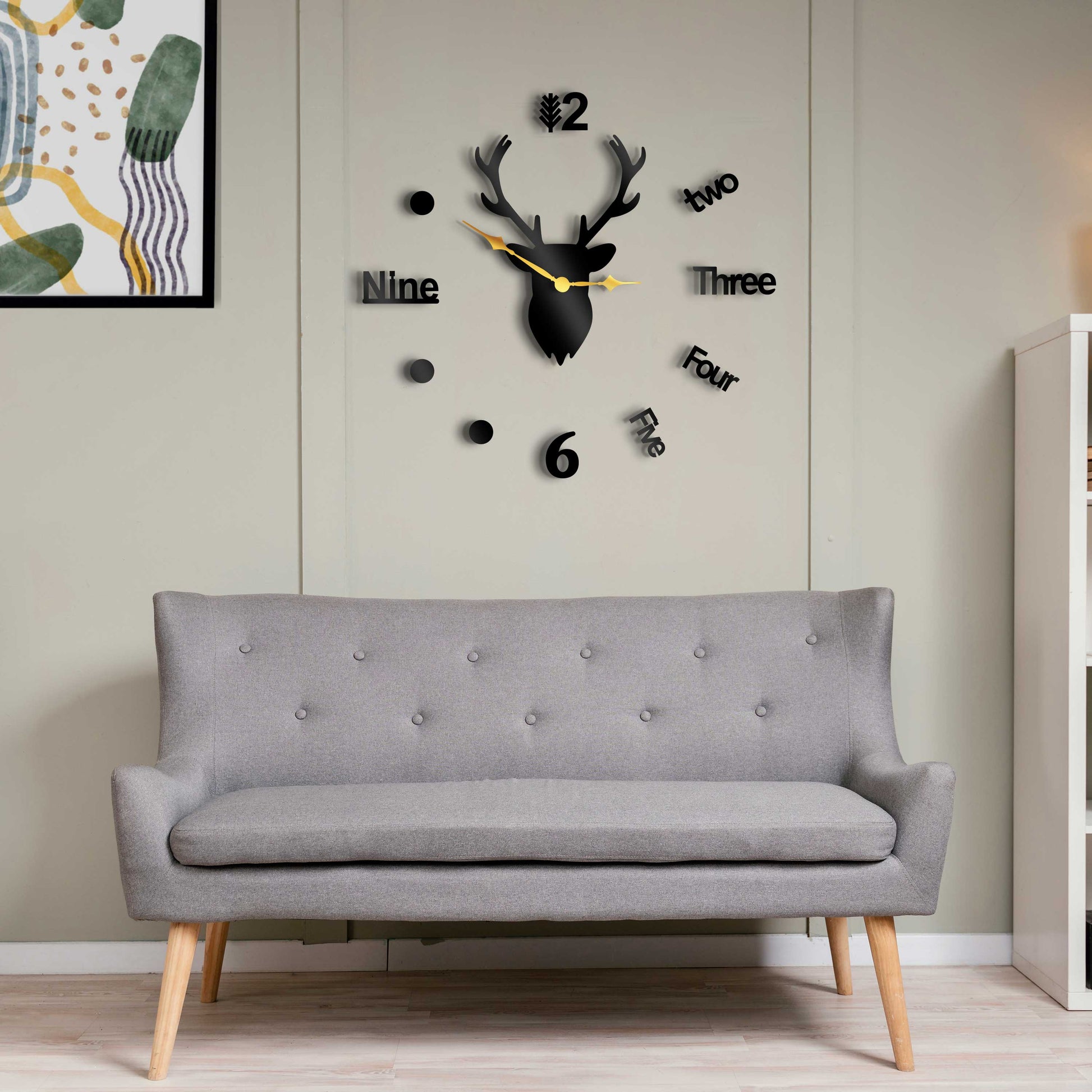 Deer Head Wall Clock Frameless DIY Wall Mute Clock 3D - Stylish Wall Clock for Home Decor